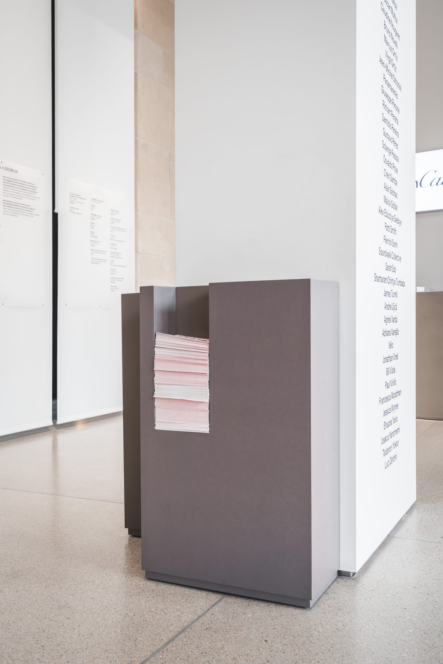 Shooting réalisé à la Fondation Cartier pour La Menuiserie de Champagne, mettant en lumière une réalisation de mobilier et de scénographie sur mesure, pensée pour dialoguer avec le lieu.
