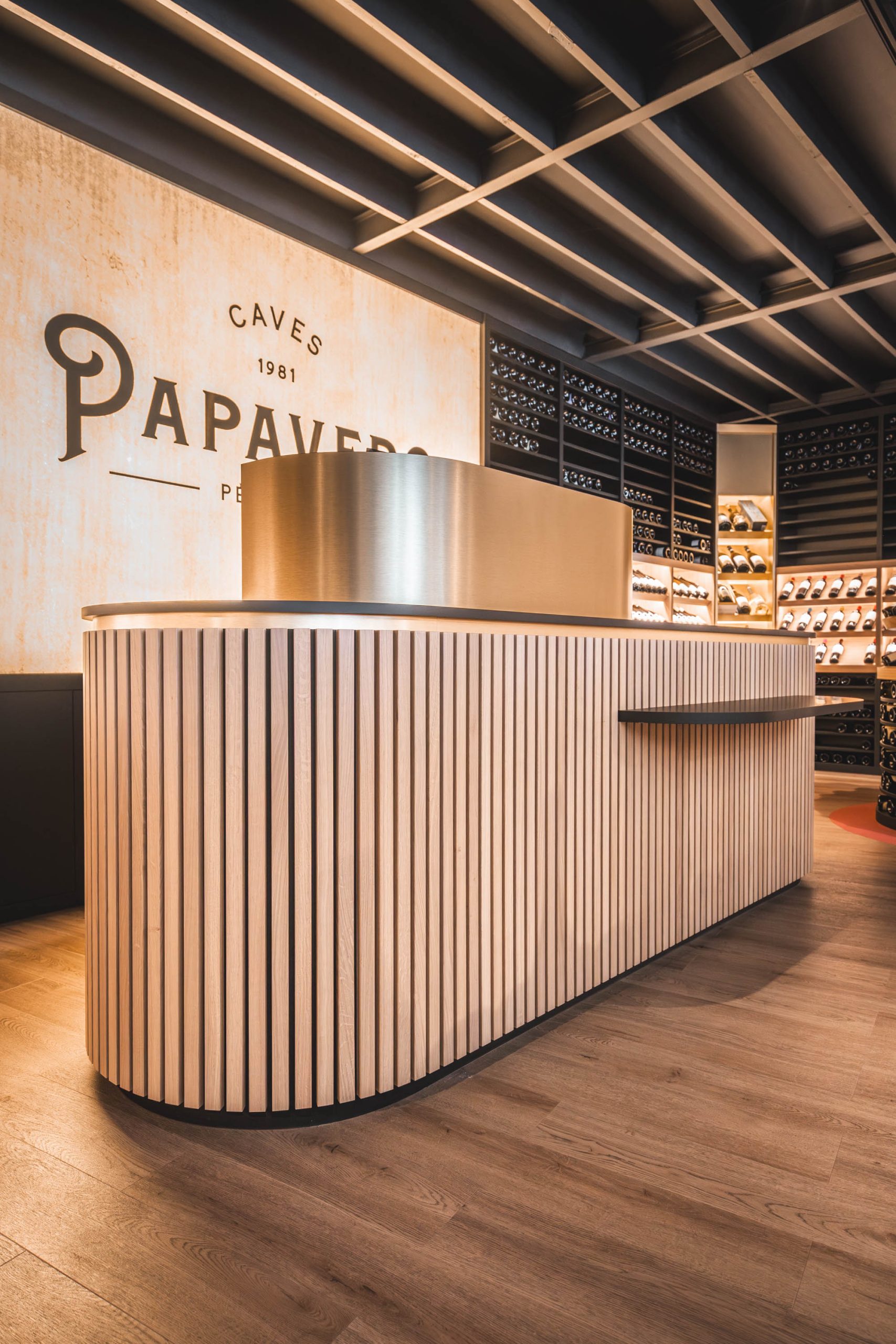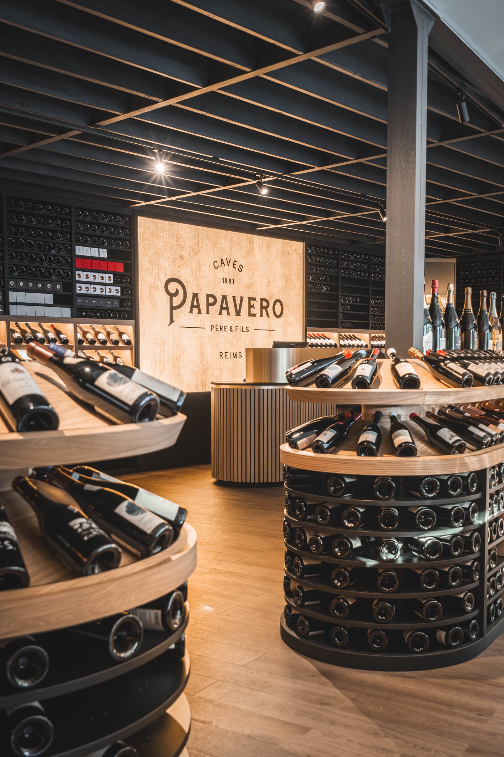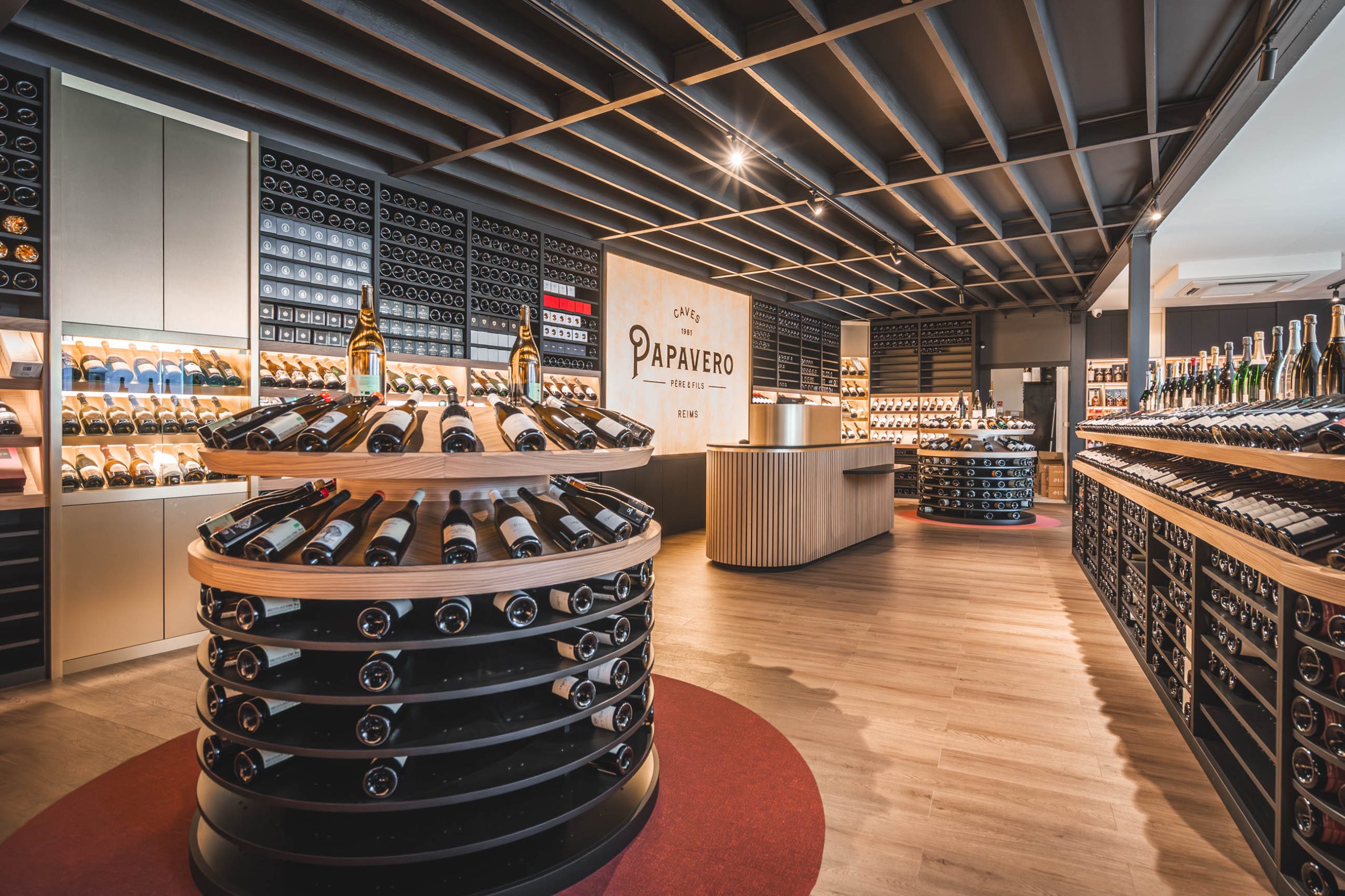 La boutique de Papavero et sa scénographie, shootée pour la Menuiserie de Champagne afin de mettre en avant leur réalisation de mobilier et aménagement architectural de l’espace.