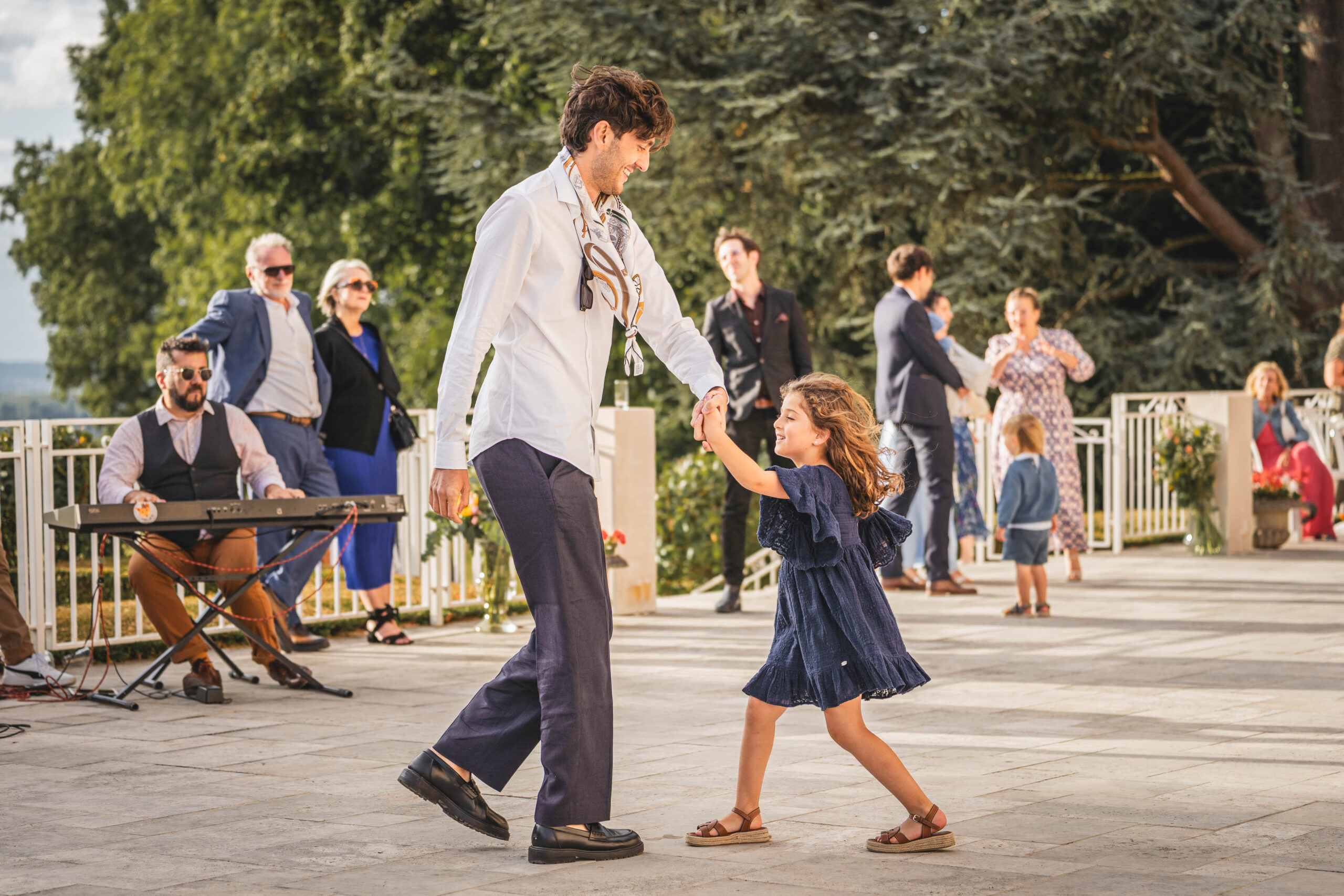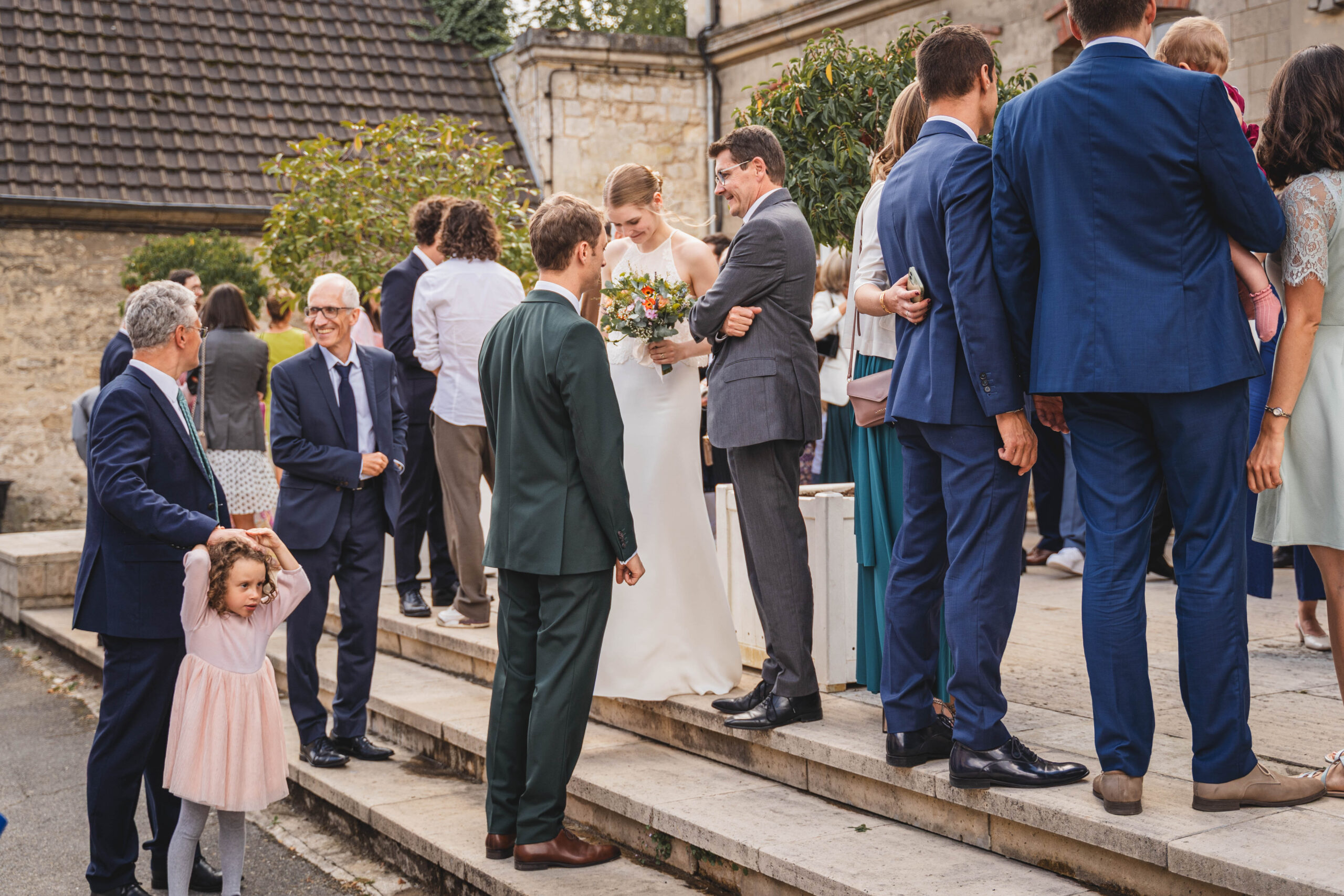 En août 2025, j’ai capturé en images les sourires de nos mariés M. & E. et de leurs proches, révélateurs d’une ambiance champêtre et extrêmement conviviale.